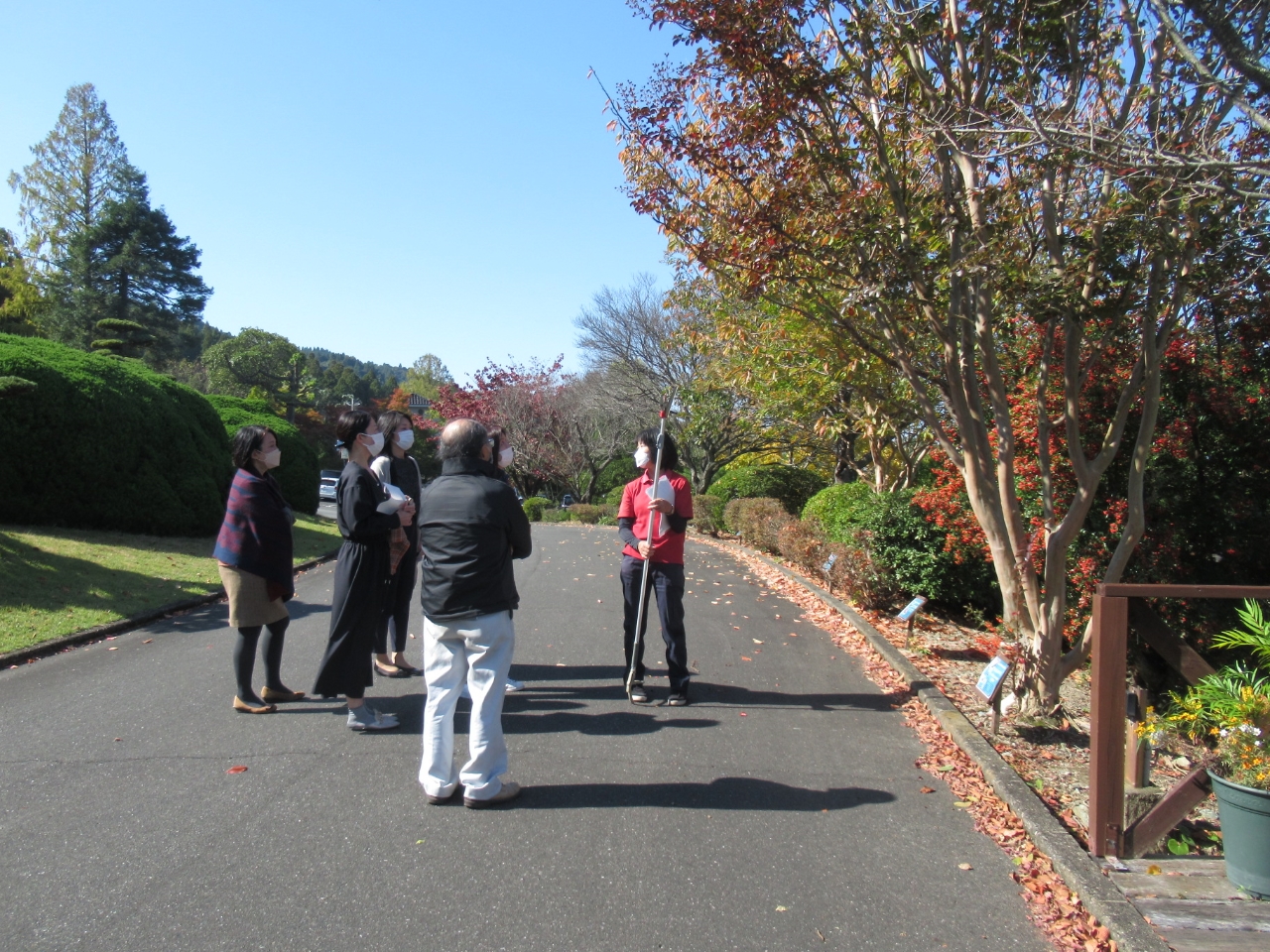 造園業界では歴史あるカイヅカイブキの並木道や珍しい樹木等を紹介しながら苑内を散策し、ご希望にあわせてスワッグに使用する花や枝葉の自然の姿を説明しながら見て頂いたり、スタッフと一緒に摘んで頂いたりすることも出来ます。