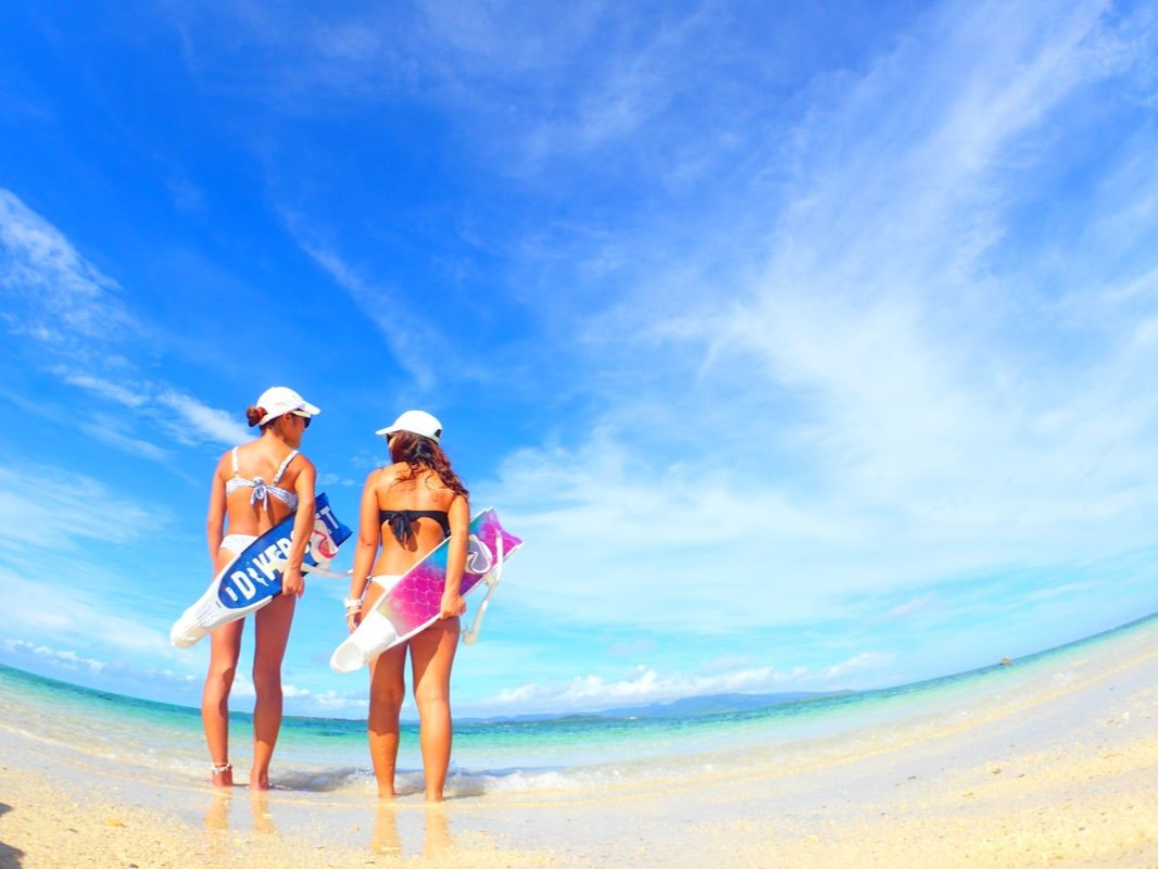 360度海に囲まれた白砂のビーチで、写真撮影や貝殻集めを自由に楽しめます。