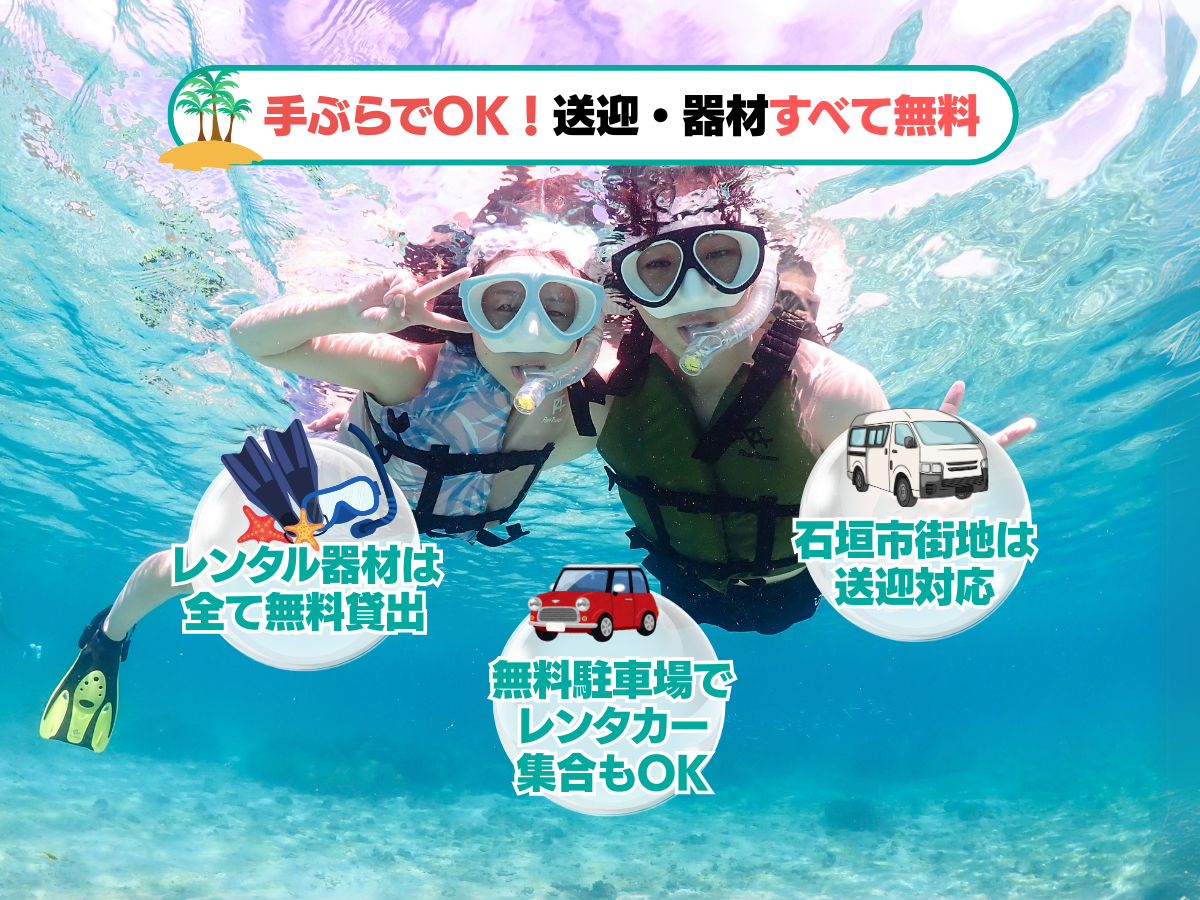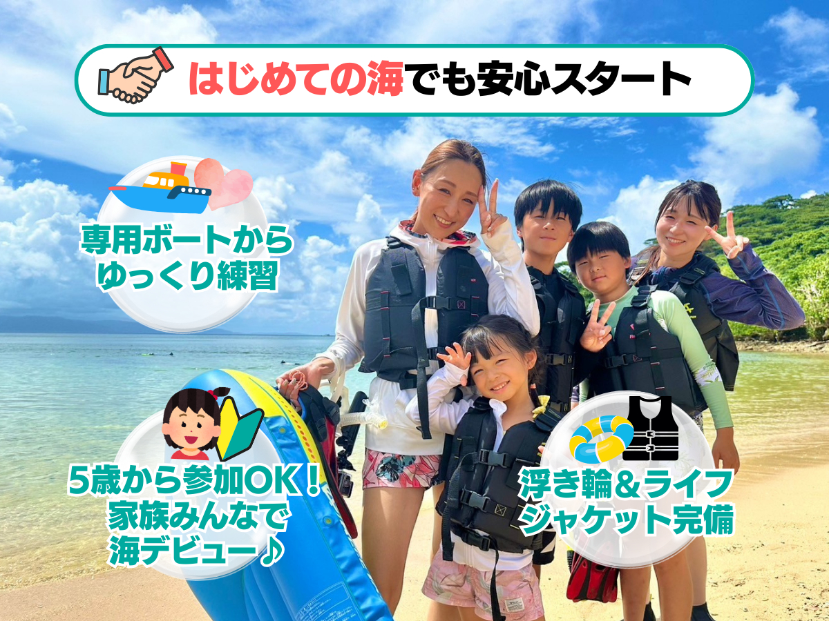 シュノーケリング初心者や泳ぎが苦手な方でも、安心してご参加いただけます。