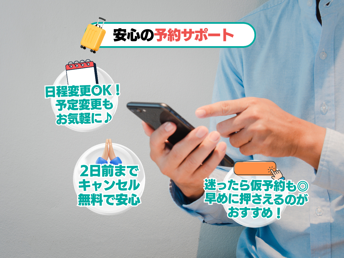 実施会社の確認連絡をもって予約の確定としています。予めご了承ください。 リクエストとは - ※予約枠ごとに料金が異なる場合がございます。