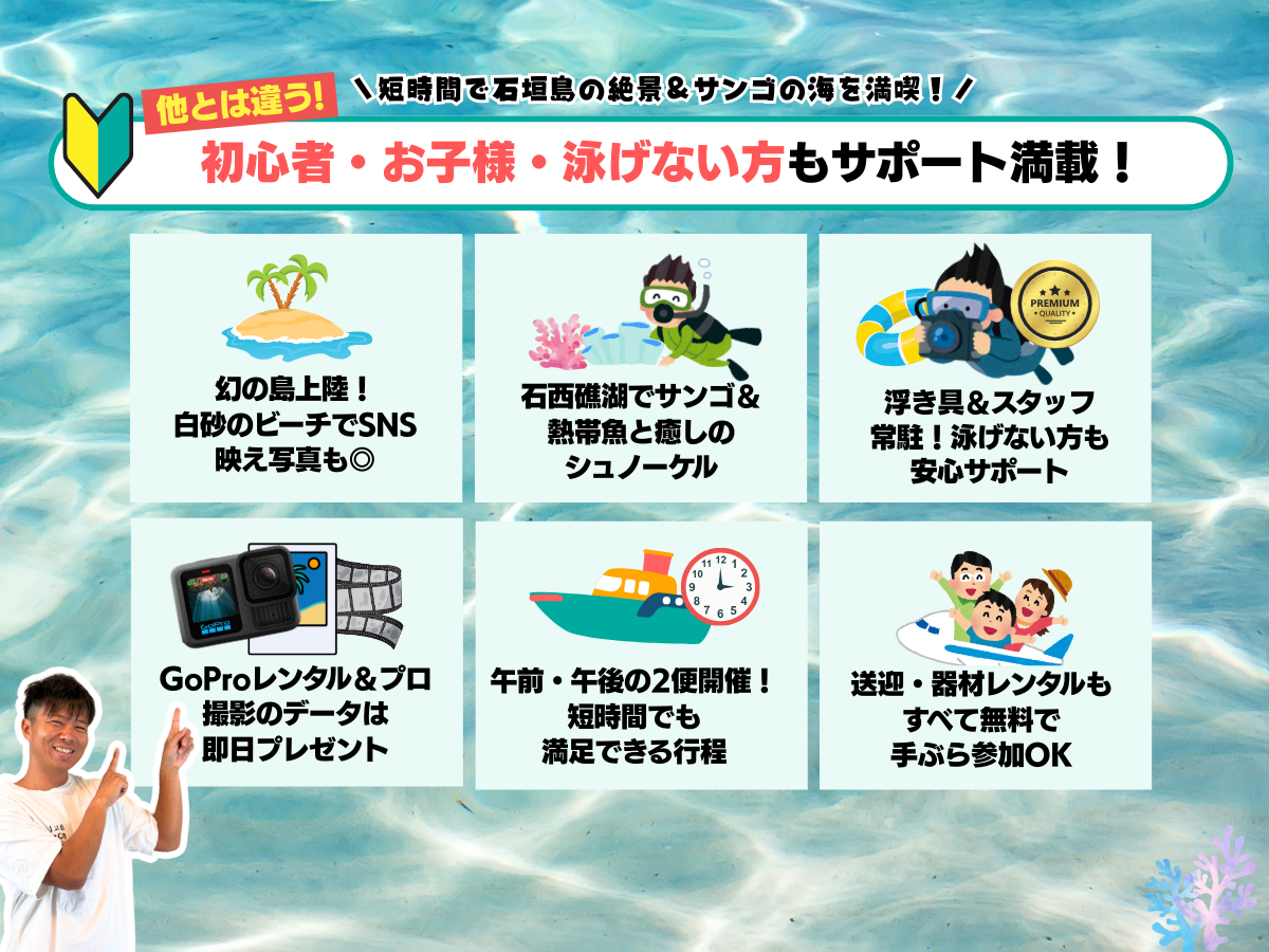 【石垣島・3時間】泳ぎが苦手でも大丈夫!幻の島&サンゴ礁で感動シュノーケル|石垣島2大絶景へ【GoPro無料】 s04☆当日予約・直前予約・早期予約歓迎【女性・ファミリー・カップルにおすすめ】