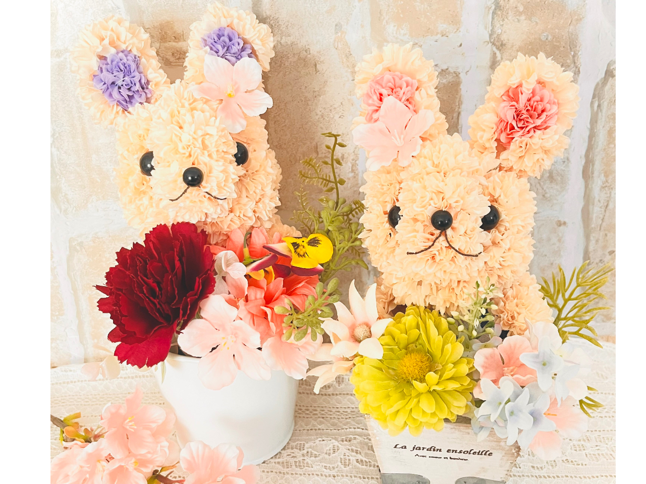 ●造花のお花を使って花うさちゃんのアレンジメントが作れます!フラワーアレンジメント・ガーデニング