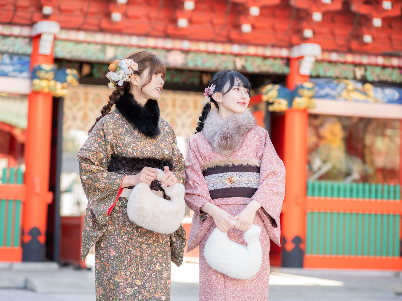 ★レトロモダンプレミアムが登場★帯・襟・袖にはファーやタック、レースなどの異素材と、パールなどの小物を取り入れて、落ち着いた統一感のあるワンランク上のオシャレを楽しんで最高の思い出に♪