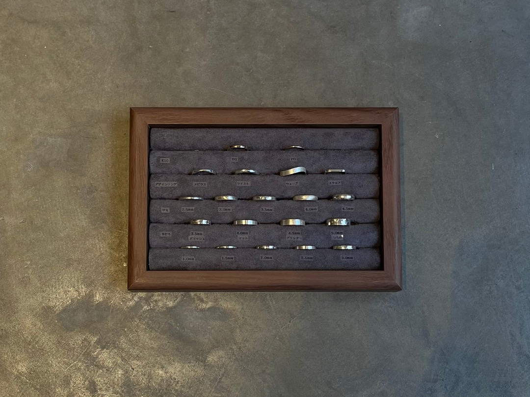リングの幅や形、表面加工、指の号数を選んで制作スタート