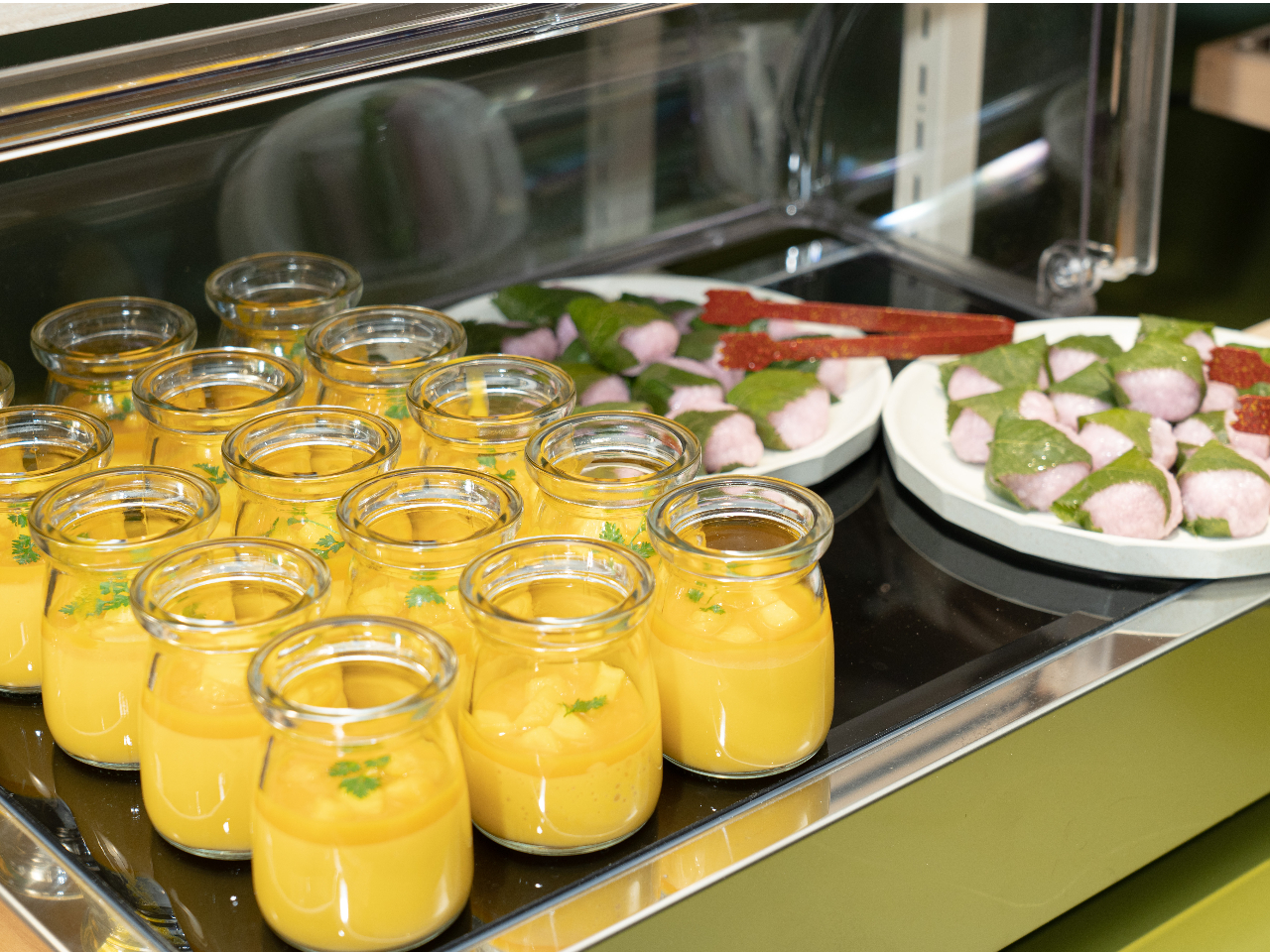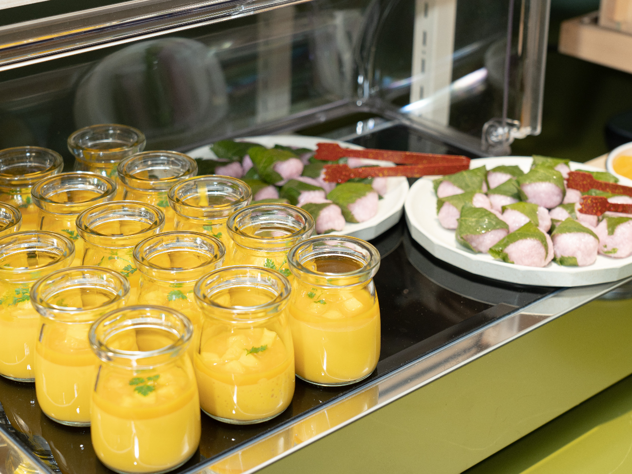 デザートコーナー2★手作りマンゴープリンや季節のデザートもご用意いたしております。