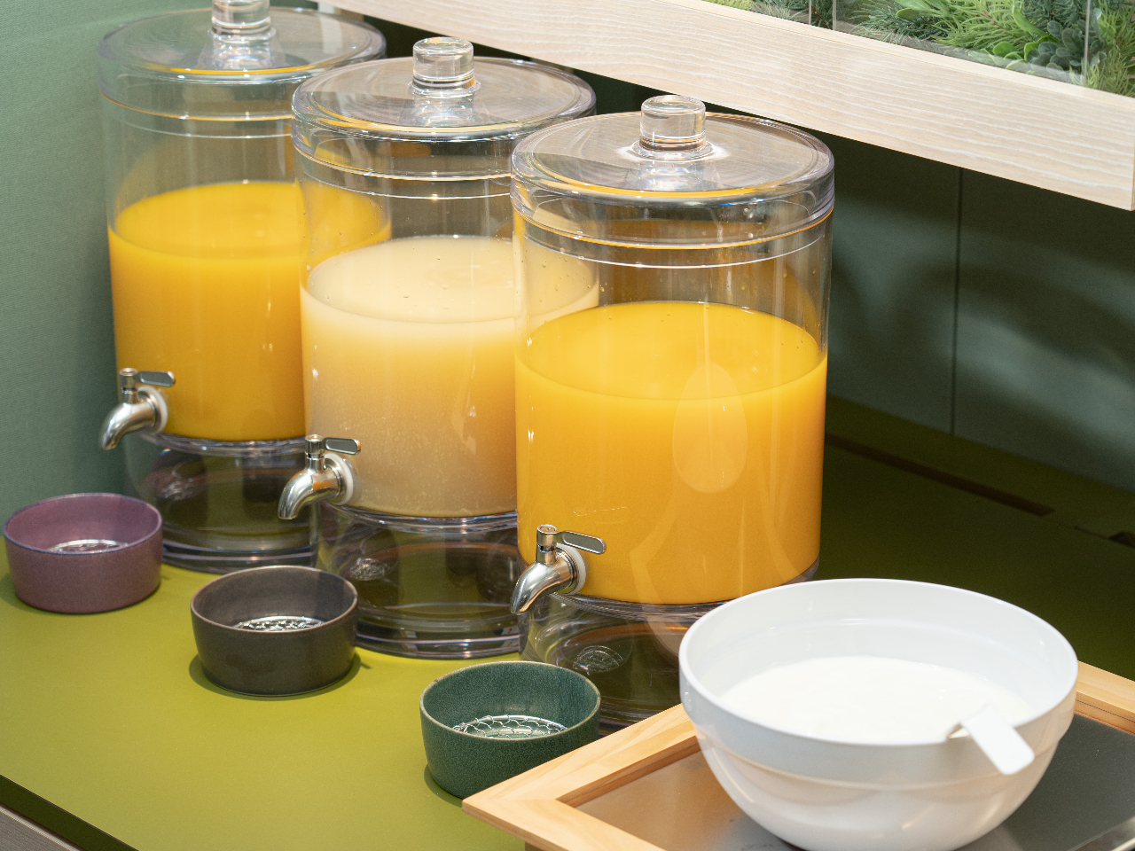 通常のジュースディスペンサー以外にも余市のリンゴジュースや愛媛ミカンのジュースをご用意いたしております。