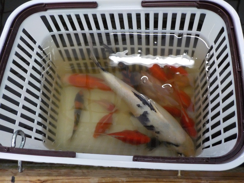 玉サバは、小3匹・中2匹・大1匹 錦鯉は、20p以下3匹・20p以上1匹
