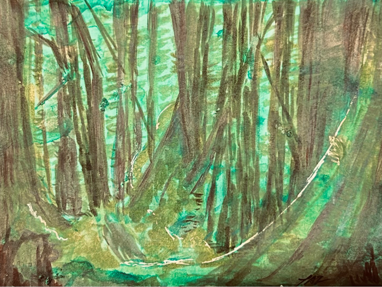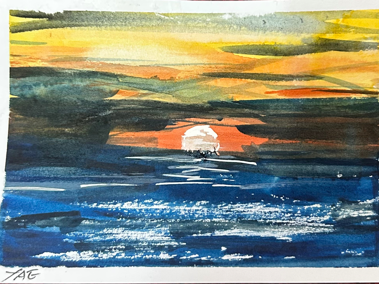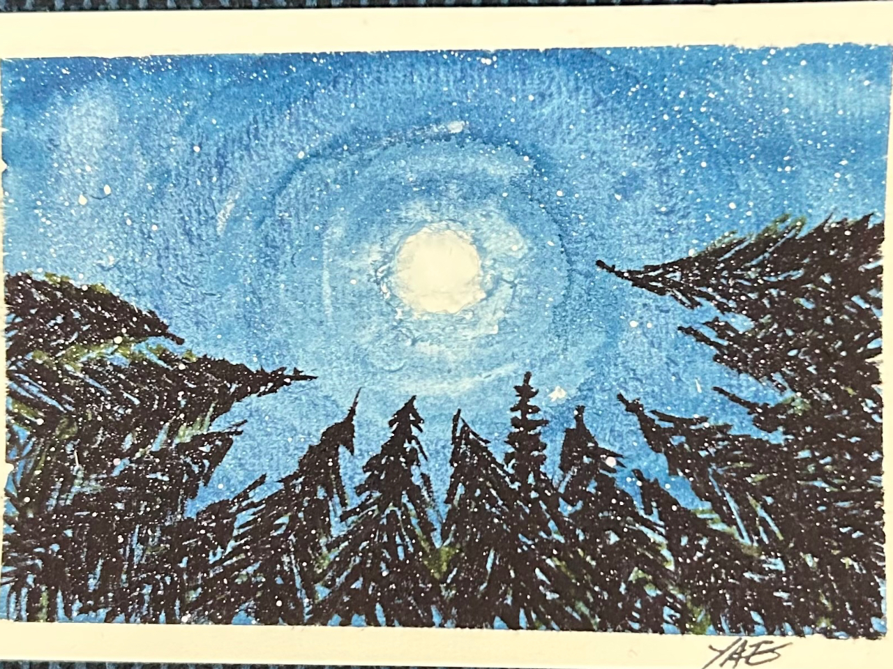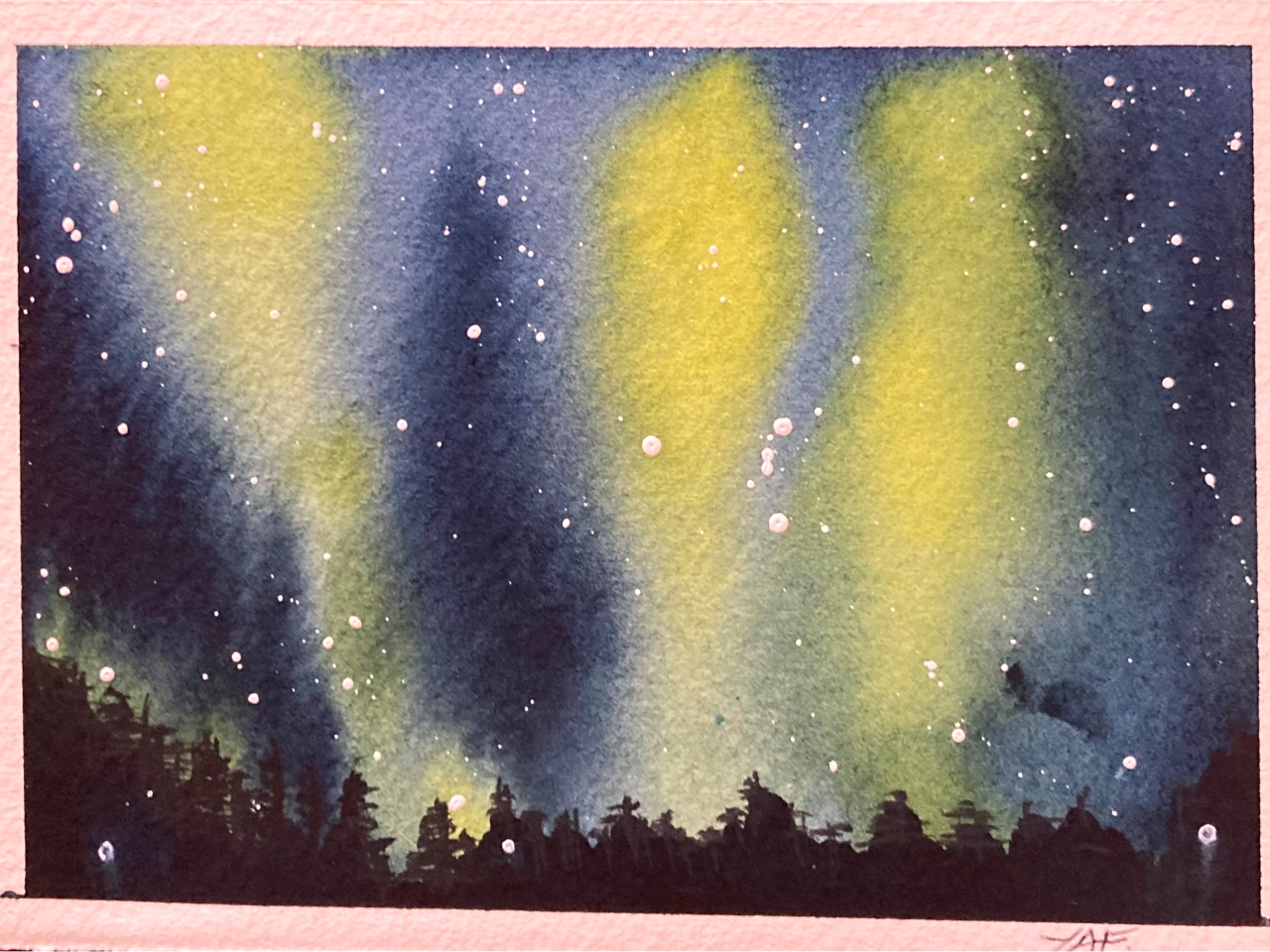 『オーロラ、風景画』色々ちょっとしたコツを伝えします。簡単に水彩画を楽しく描くことができますよ水彩画初めての方もトライしてみて下さいね♪♪