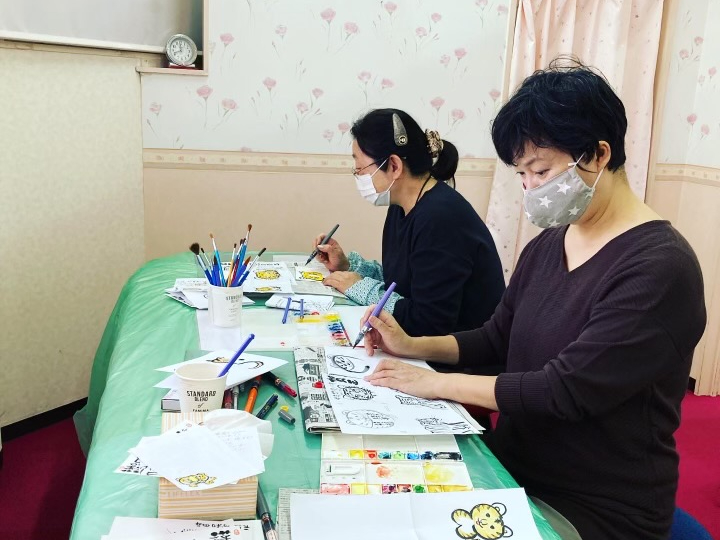 「のんびりゆったりのほほんと、、」初めての体験皆さんそれぞれ集中して描いてます。