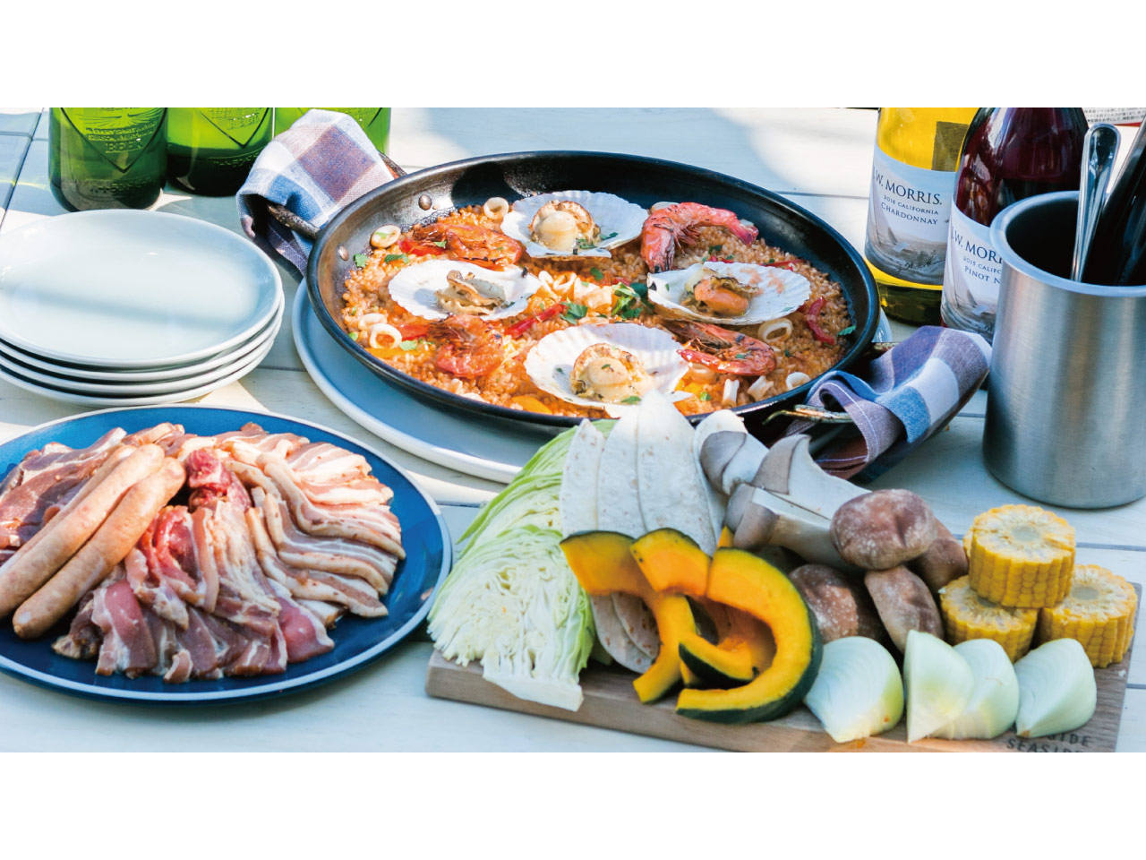 手ぶらで後片付けもナシ、数種類のお肉やソーセージ、丸ごと魚介、なんといっても魚介の旨味たっぷりな〆のBBQパエリアは絶品!