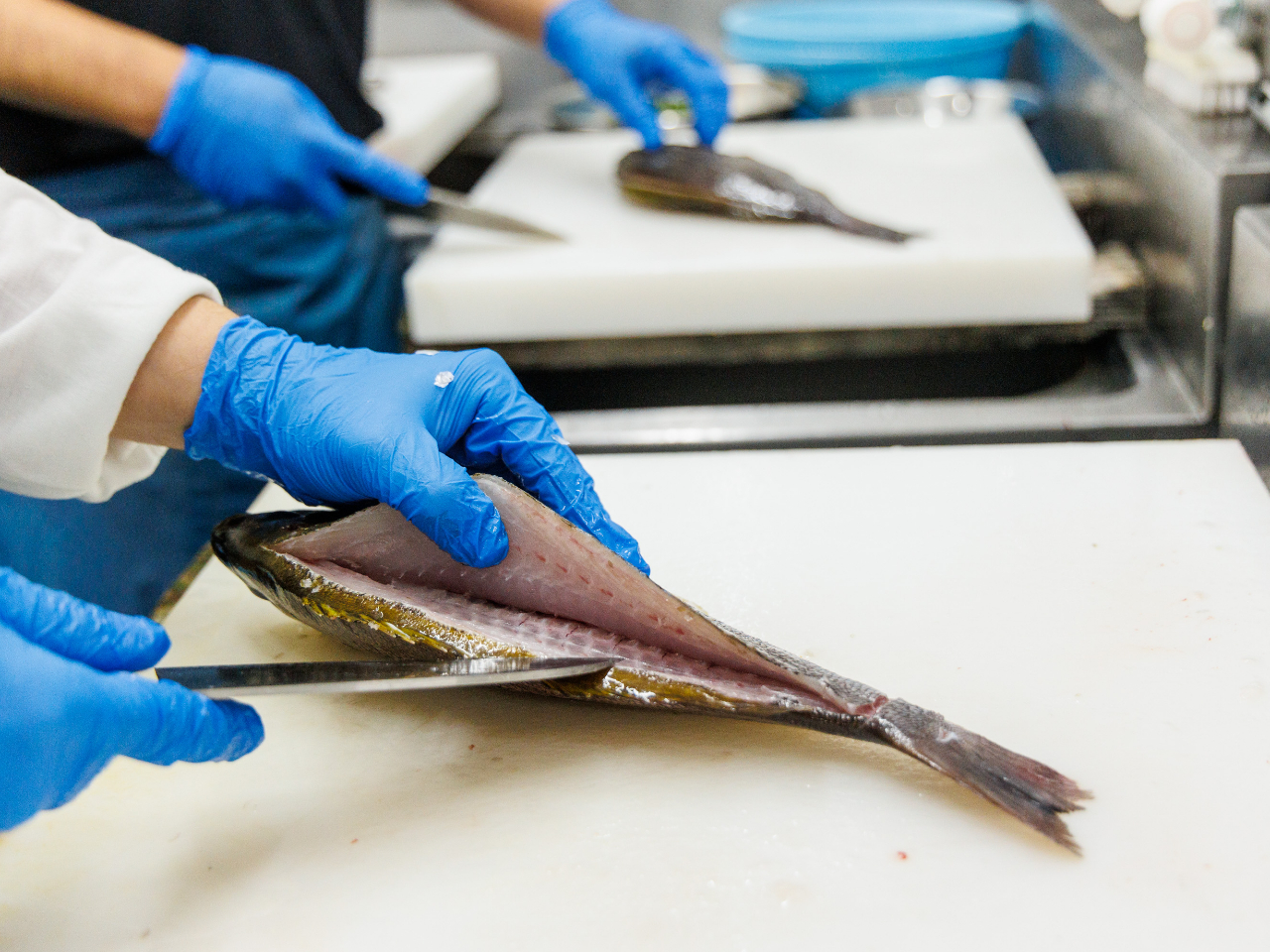 普段は立ち入ることができない魚屋が使っているバックヤードで、魚の捌き方をこの道20年のプロより直接レクチャーしていただけます。
