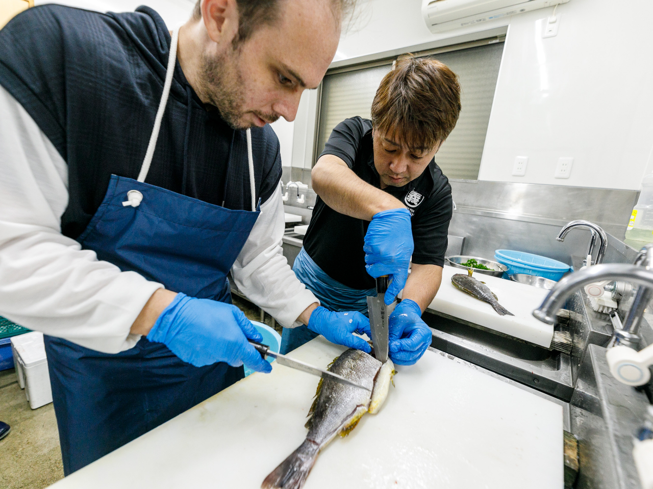 普段は立ち入ることができない魚屋が使っているバックヤードで、魚の捌き方をこの道20年のプロより直接レクチャーしていただけます。