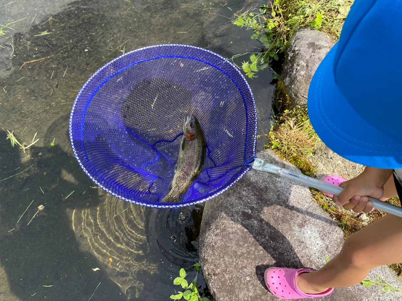 池には、ニジマス・岩魚が元気に泳いでいます。新しい魚も入ってきました!