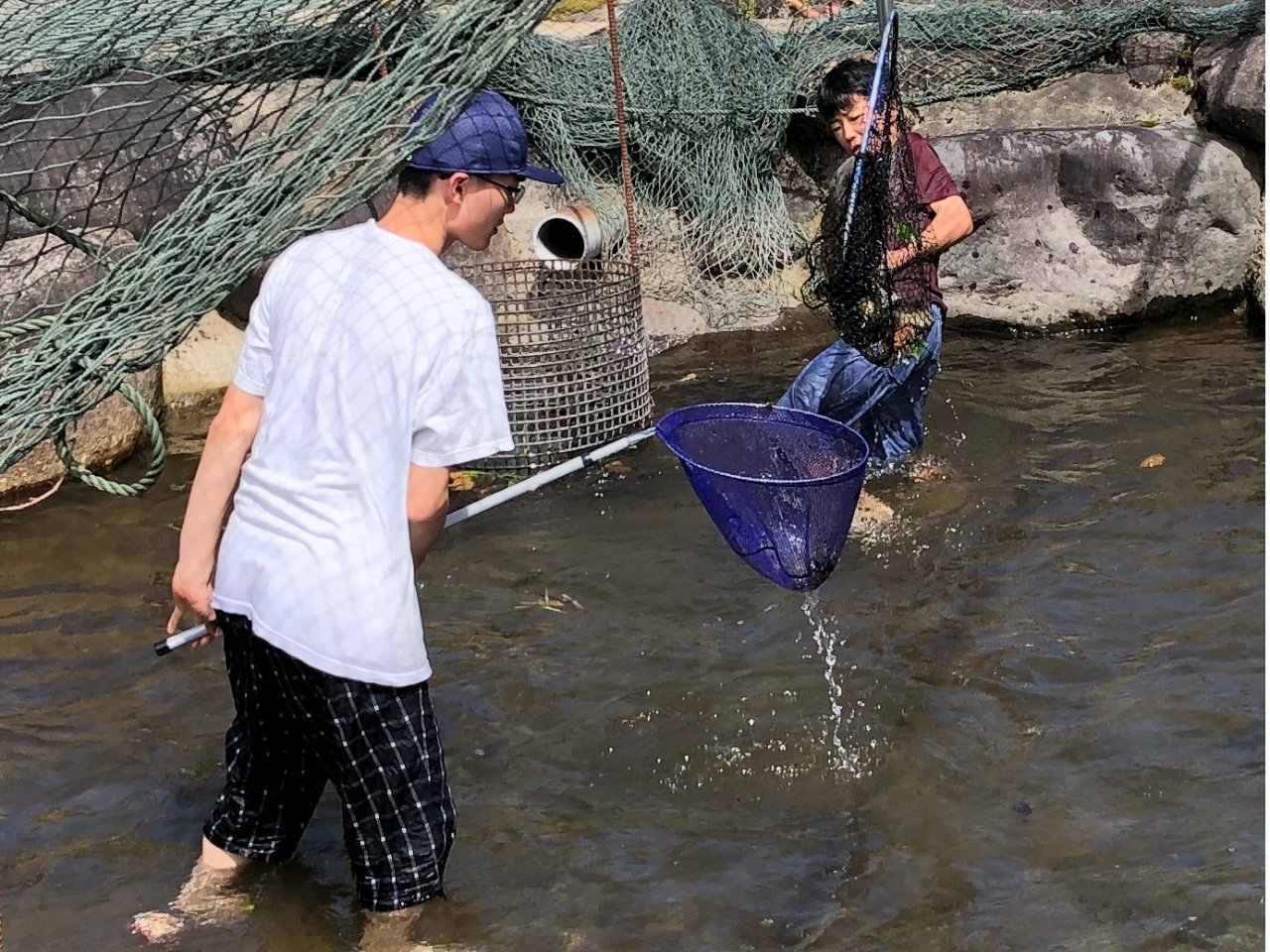 ニジマスをつかんだり、網で取ったり自由に、楽しめます。