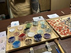 日本伝統技術、金継ぎの技法を使いたくさんのカケラの中からお好きなものをお選びいただき耳飾り、指輪、ブローチなどを作成いただけます。お土産やプレゼントなどにもピッタリです♪アクセスのよい四条河原町で思いで作り!他の観光地へのアクセスも◎