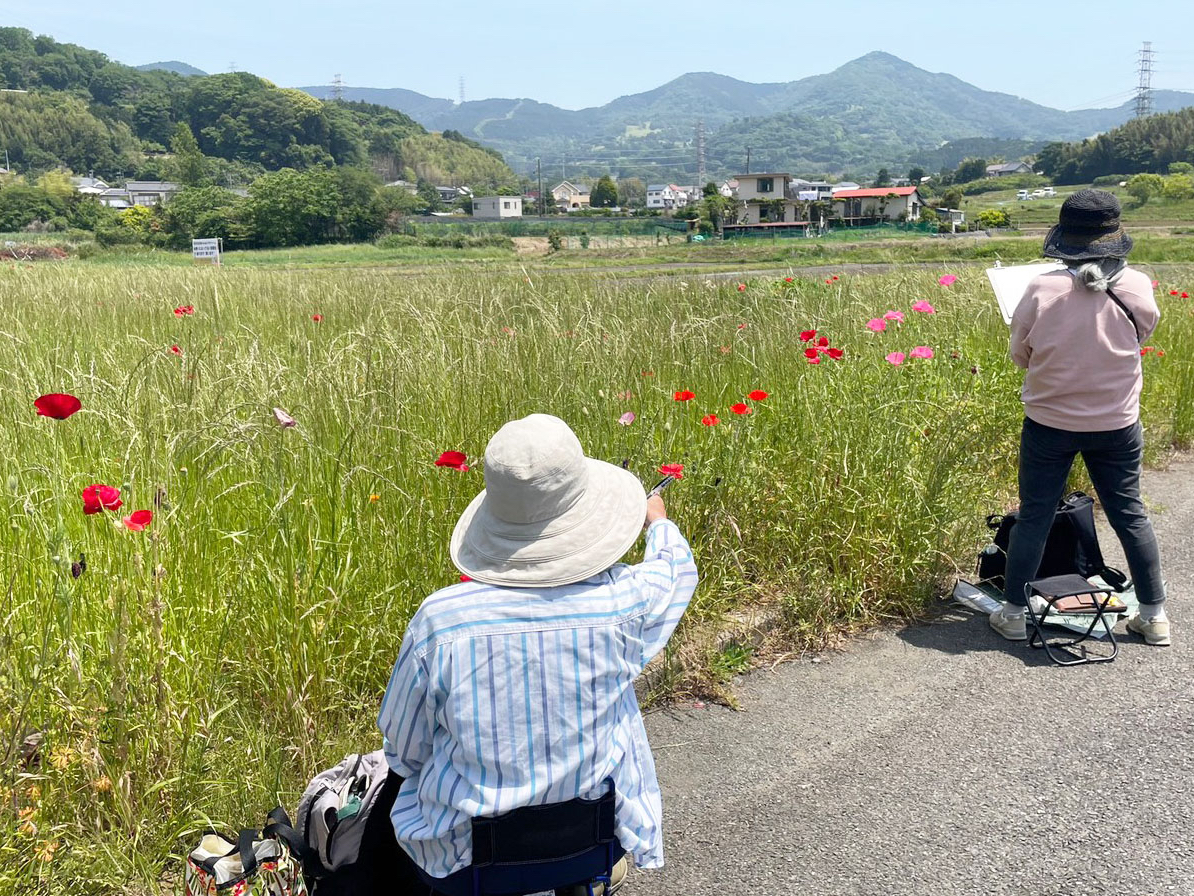 完成させます。秦野市の自然豊かな観光スポットへ赴き、お勧めのアングルで描き始めます。