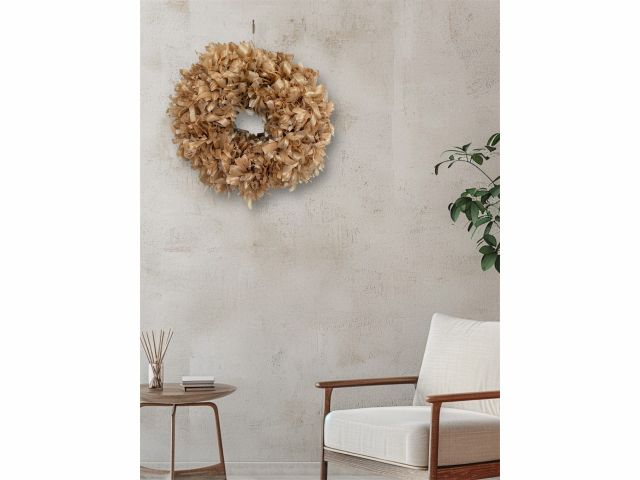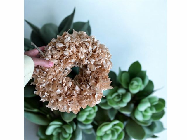 木から削り出したカンナ屑で、ふんわりと仕上げたナチュラルリース。