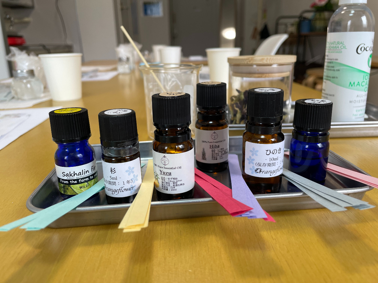 一つ一つ香りを確かめて、好きな香りを見つけるのも楽しみの一つです。時には植物そのものを用意していくこともあります。