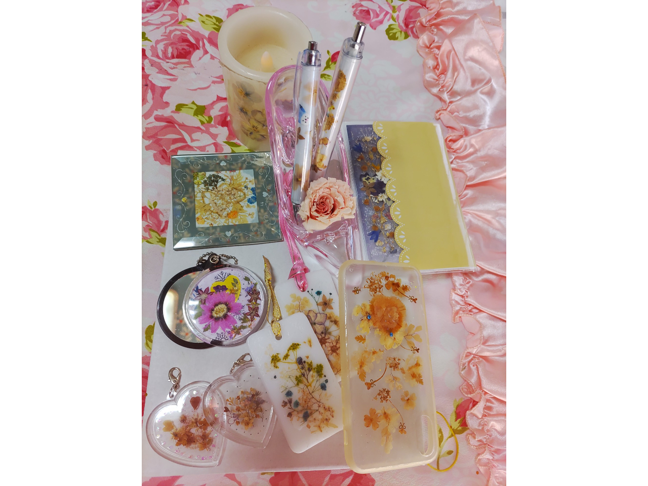 【お気軽コース】押し花ボタニカル小物作り体験(人気の押し花ボールペン、スライドミラー他60点程)