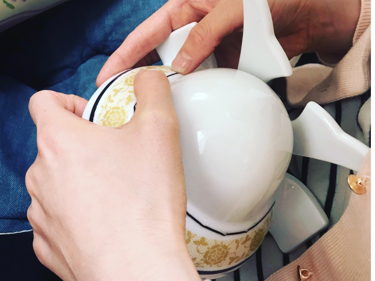 はじめてのポーセラーツでしたが、親切に教えて頂き楽しく作ることができました。今回は兜を作りましたが、他にもいろんな物を作ってむたいです。