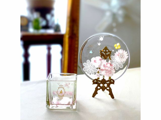 簡単で可愛くオシャレなオリジナル食器が作れます♪ガラス製品にお好きな転写紙を貼って専用の電気釜で焼成するだけ。