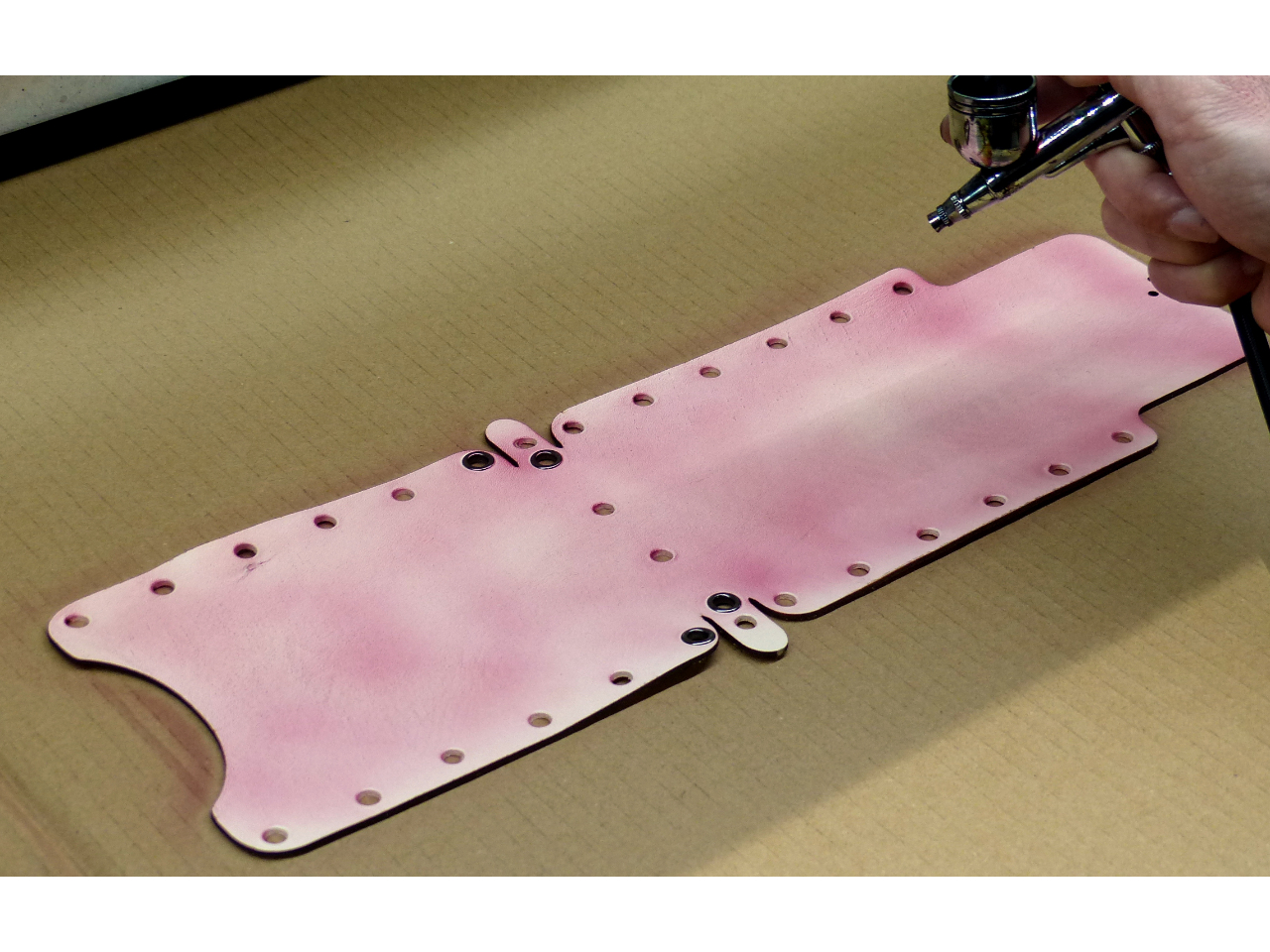 エアブラシで染色します。エアブラシの使い方など、丁寧に説明いたしますので初めての方でもご安心ください。