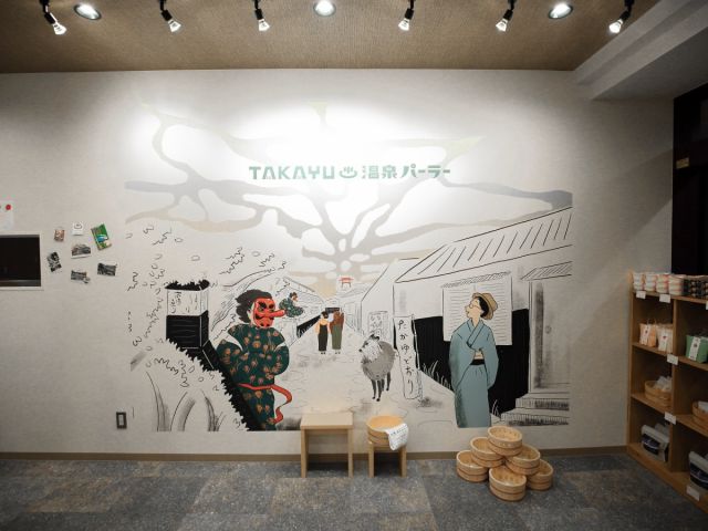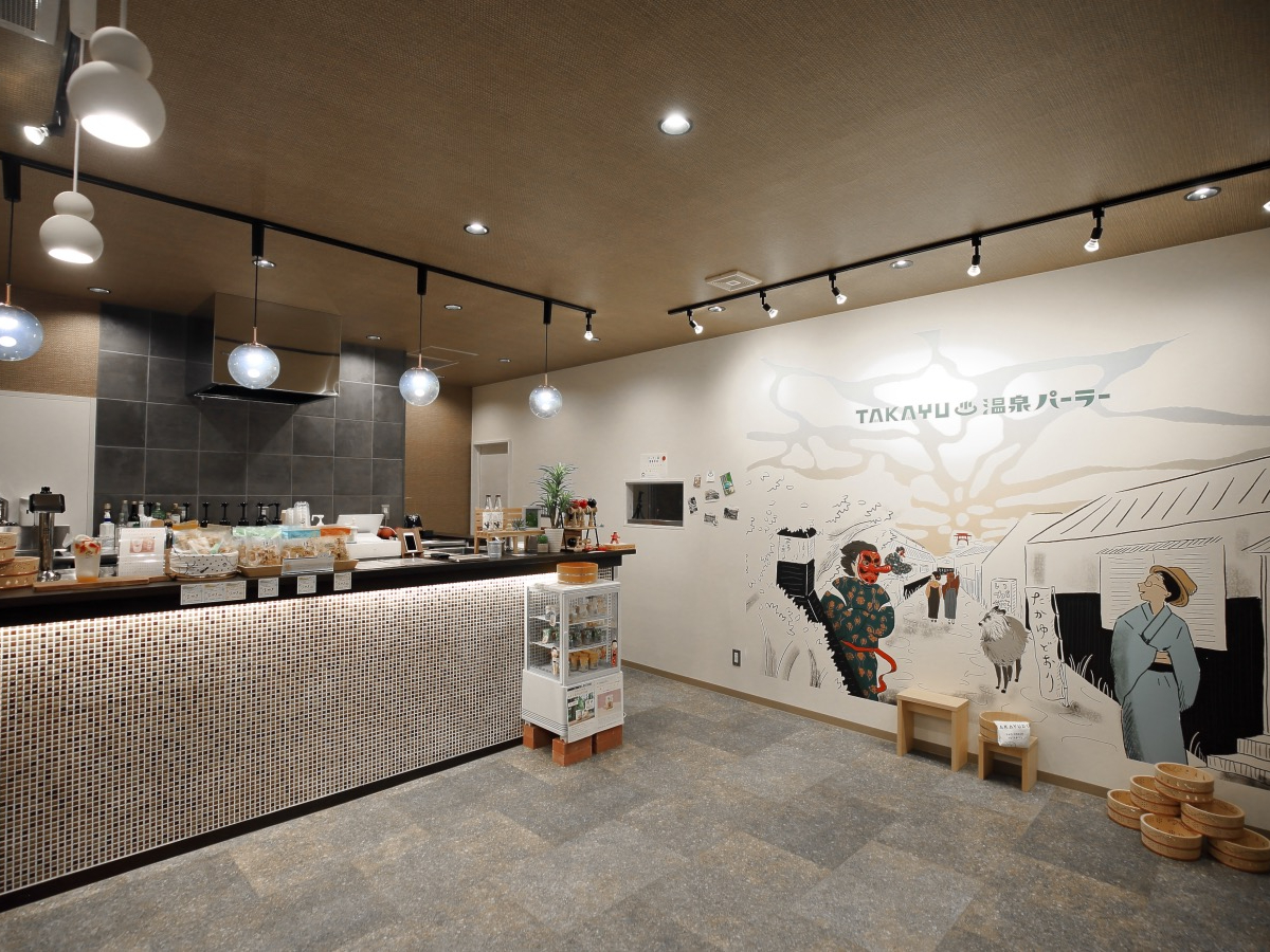 @TAKAYU温泉パーラーのスタッフに人数を受付。