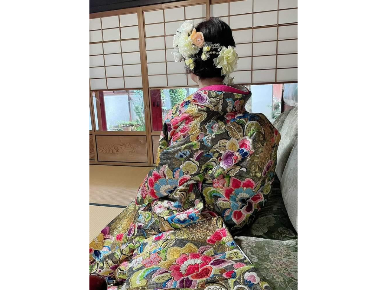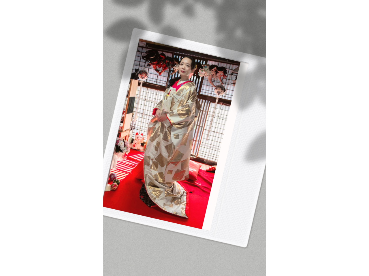 着物は日本の伝統的な婚礼衣装で、お好きな着物をお選びいただけます。