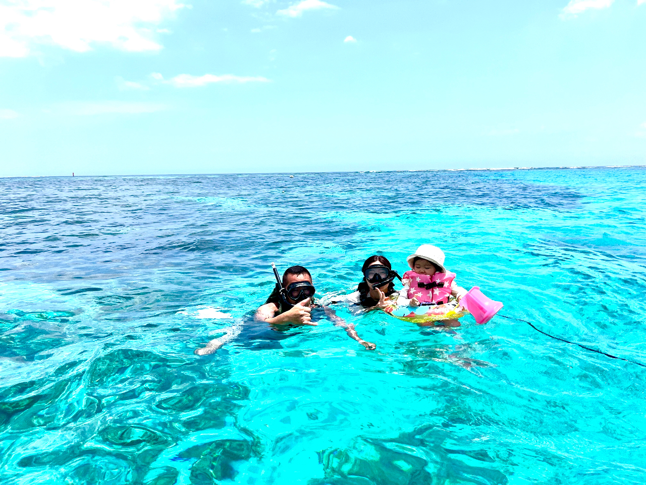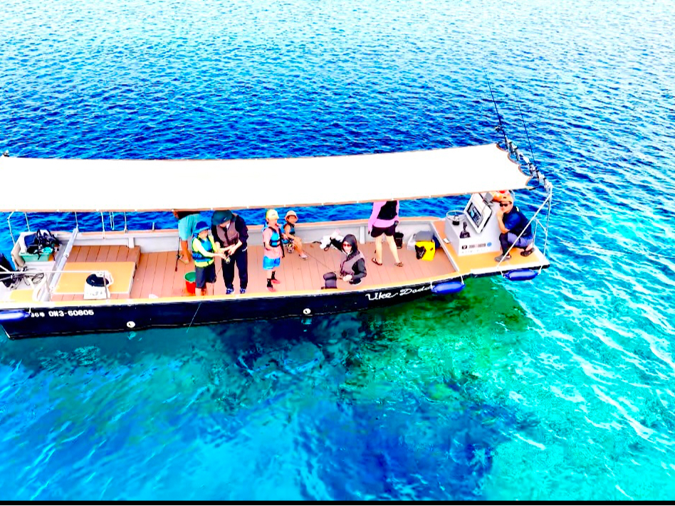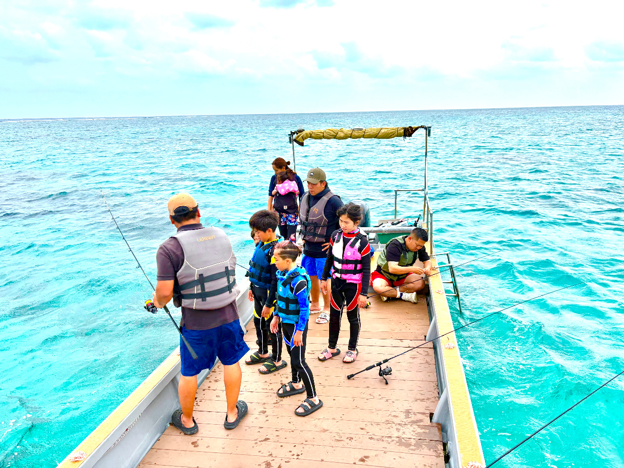 シギラ沖合!0才〜85歳初心者様船で行くシュノーケルクリアカヤック初心者船釣り