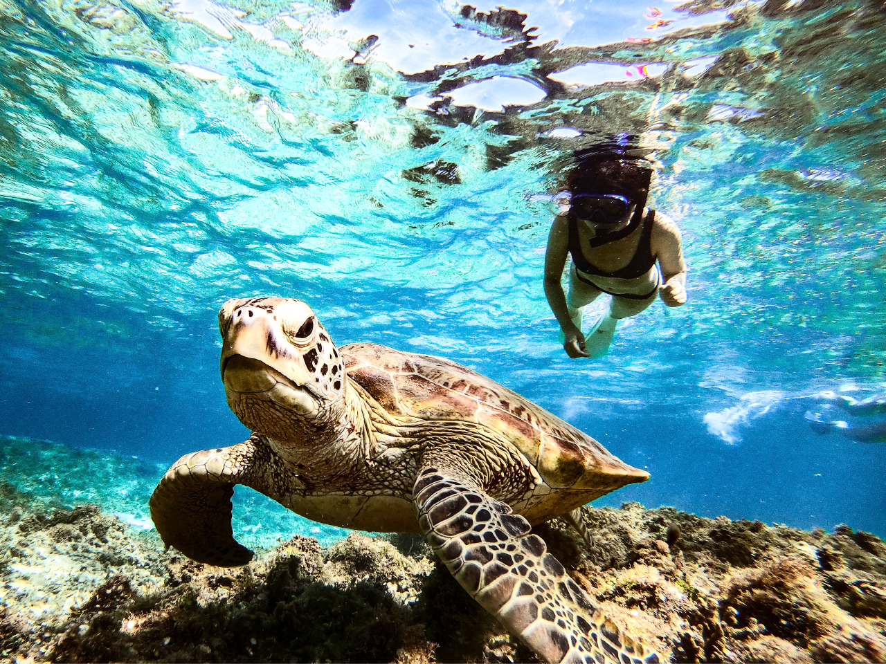 ウミガメとの遭遇率も世界トップレベルの海でシュノーケリングを楽しみましょう!