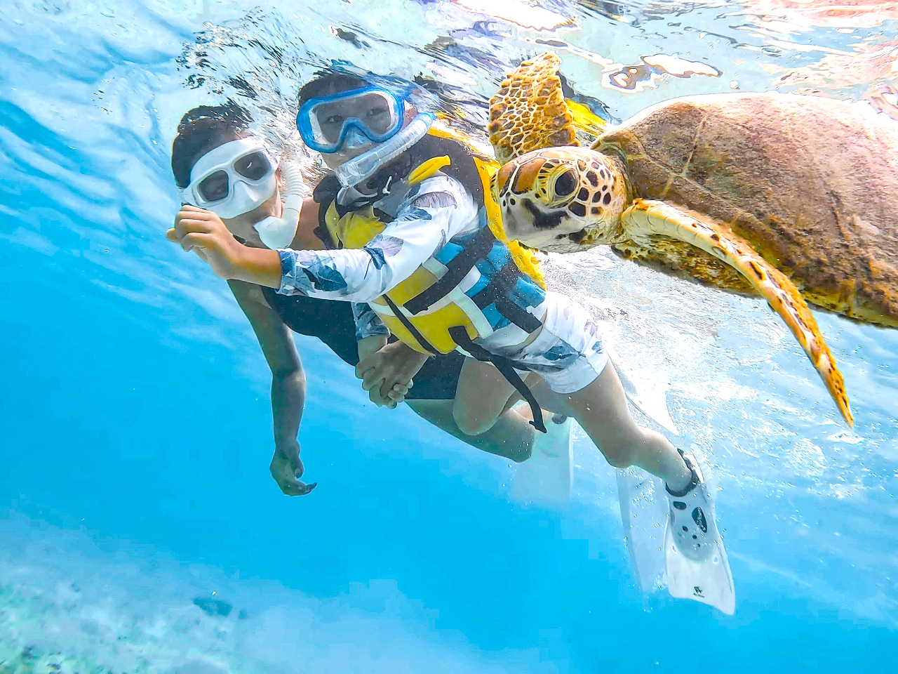 ウミガメとの遭遇率も世界トップレベルの海でシュノーケリングを楽しみましょう!