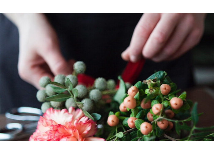 その季節の生花を使ったフレッシュなアレンジメントを作ります