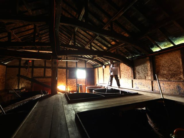 醸造蔵には、16本の桶が並んでいて、全ての桶で醤油が熟成中です。