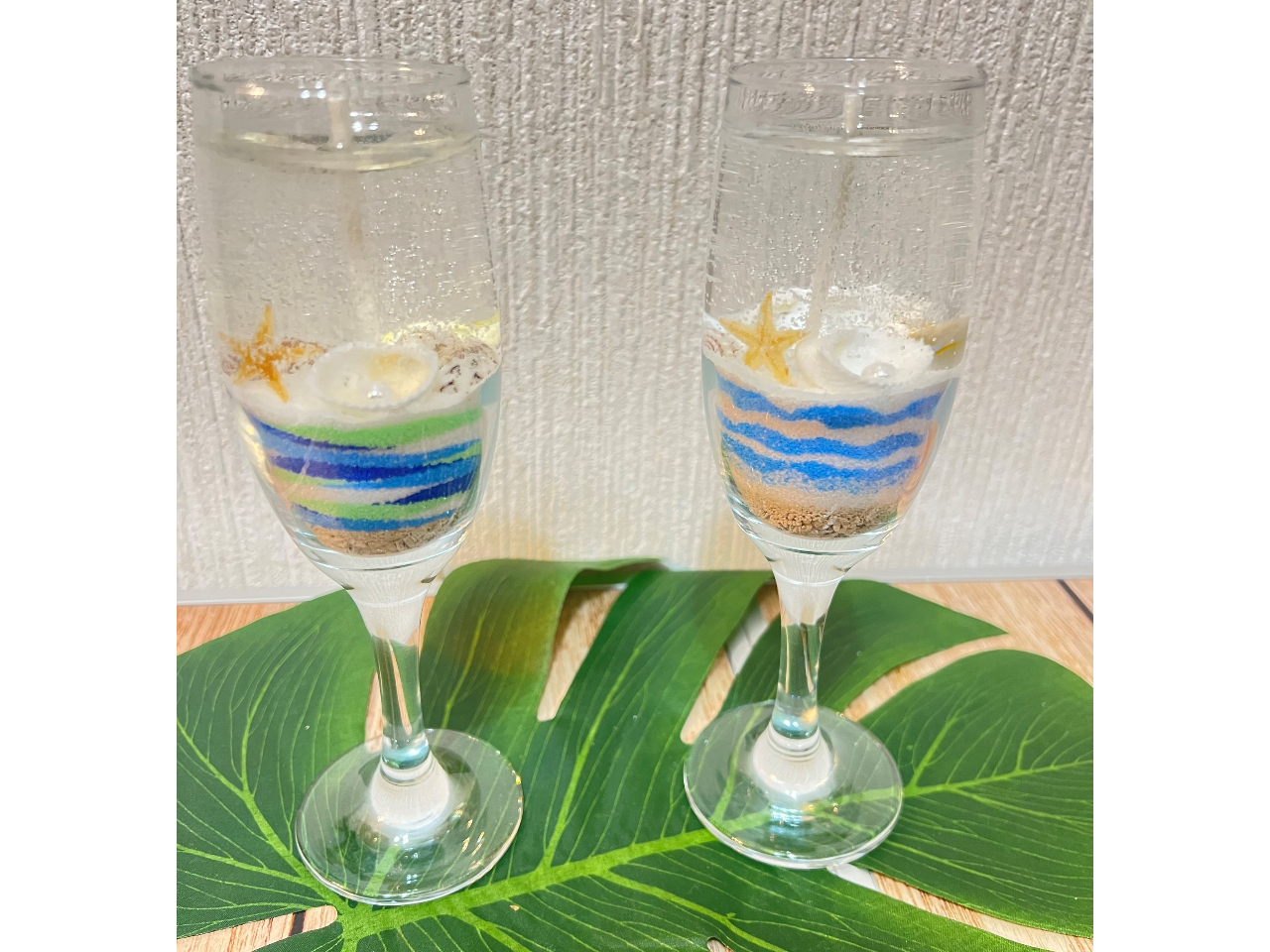 カラーサンドの色を選んでジェルを注いで作るキャンドルです♪