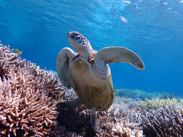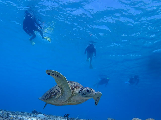 最初のスポットで少し小さめのアオウミガメに出会え、その後も違う種類、アカウミガメ2匹にも会えました!