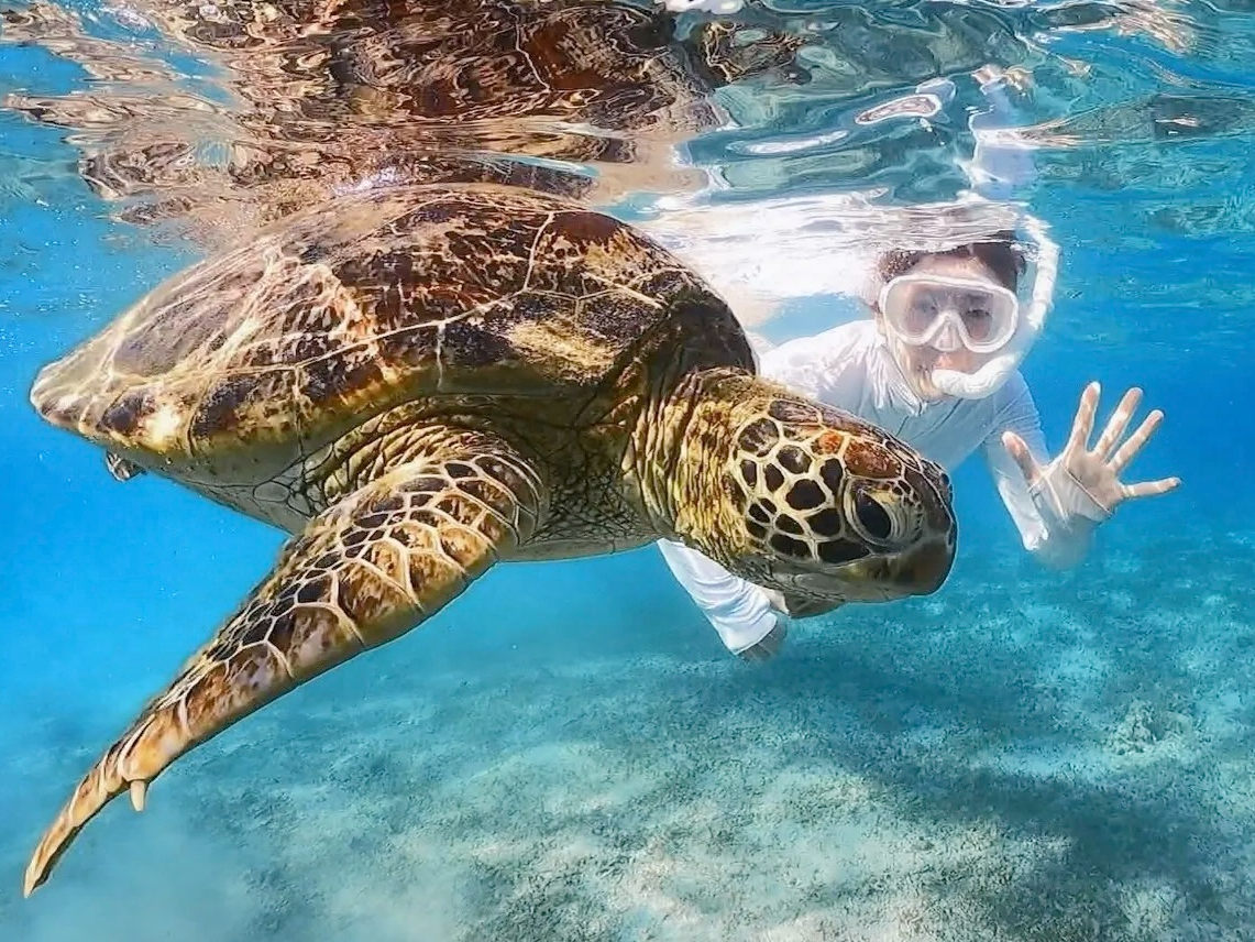 奄美の透き通る海でウミガメや魚たちと泳ぐ感動体験!体験後はみんなで楽しむBBQ付きシュノーケリングプラン!