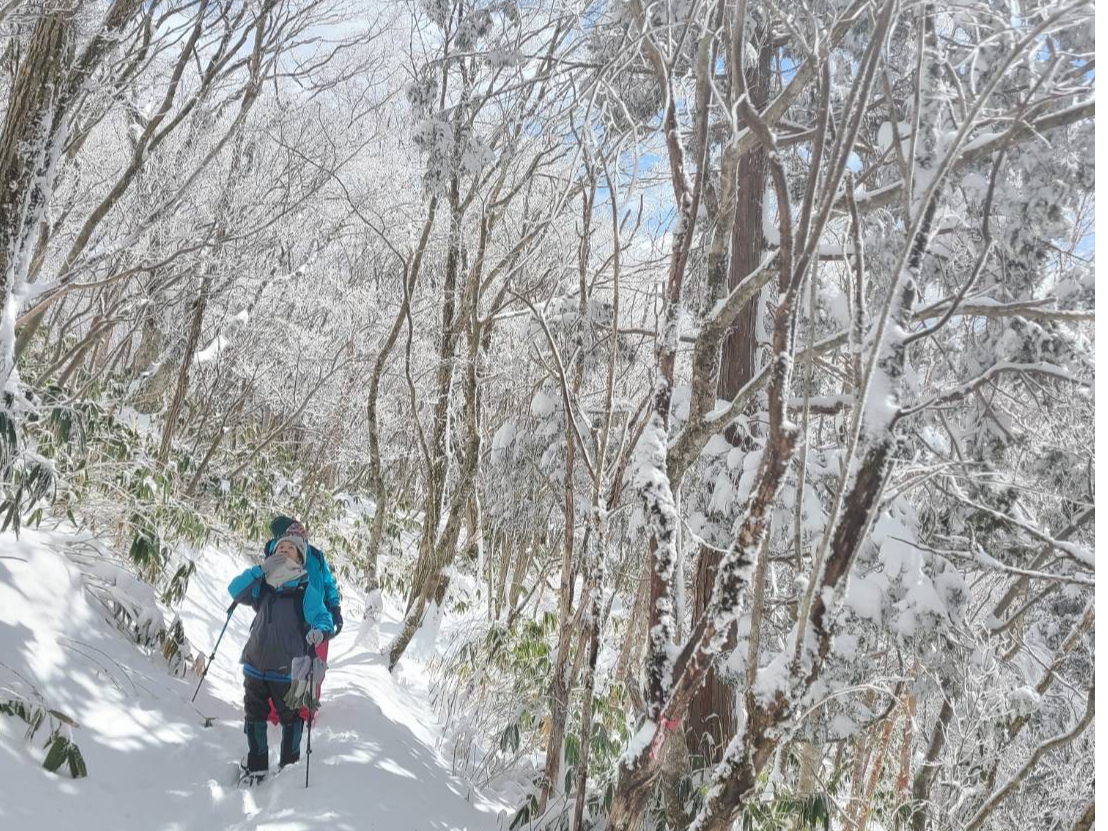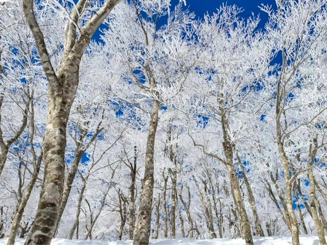 雪に覆われたブナの原生林を歩けば、まるで物語の世界に迷い込んだかのような幻想的な景色が広がり、冬の静寂と神秘に包まれます。