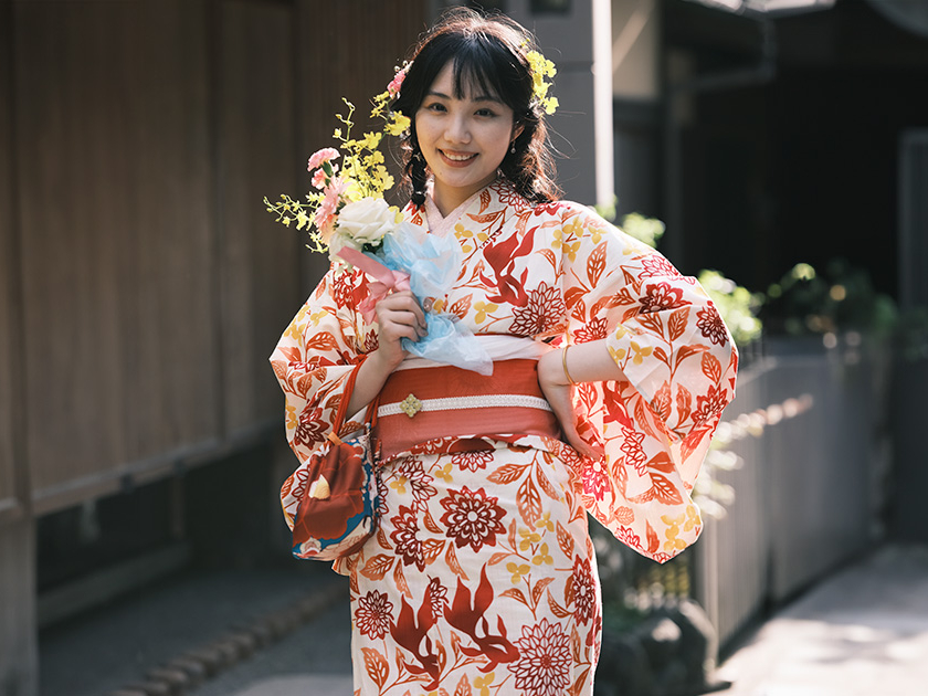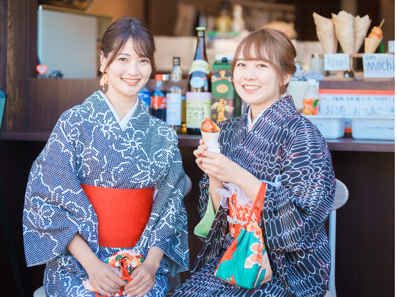 着物(浴衣)、帯(半幅帯)、足袋、草履、バッグ(一部有料)、着付けに必要な下着・小物一式・ヘアセット※日本髪・新日本髪は対応しておりません。