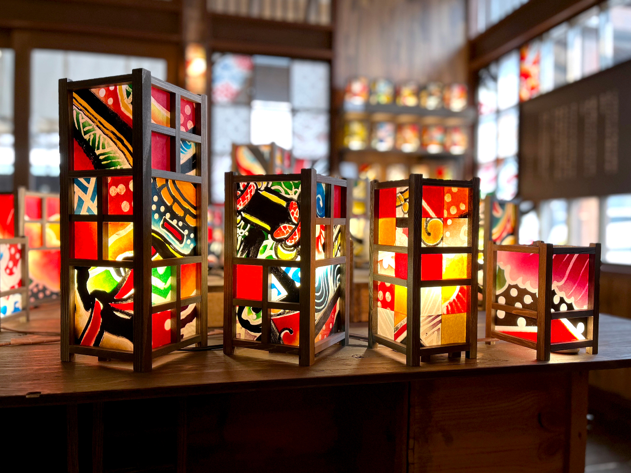組み合わせていく灯ろうは、伝統的な色や柄が並び、