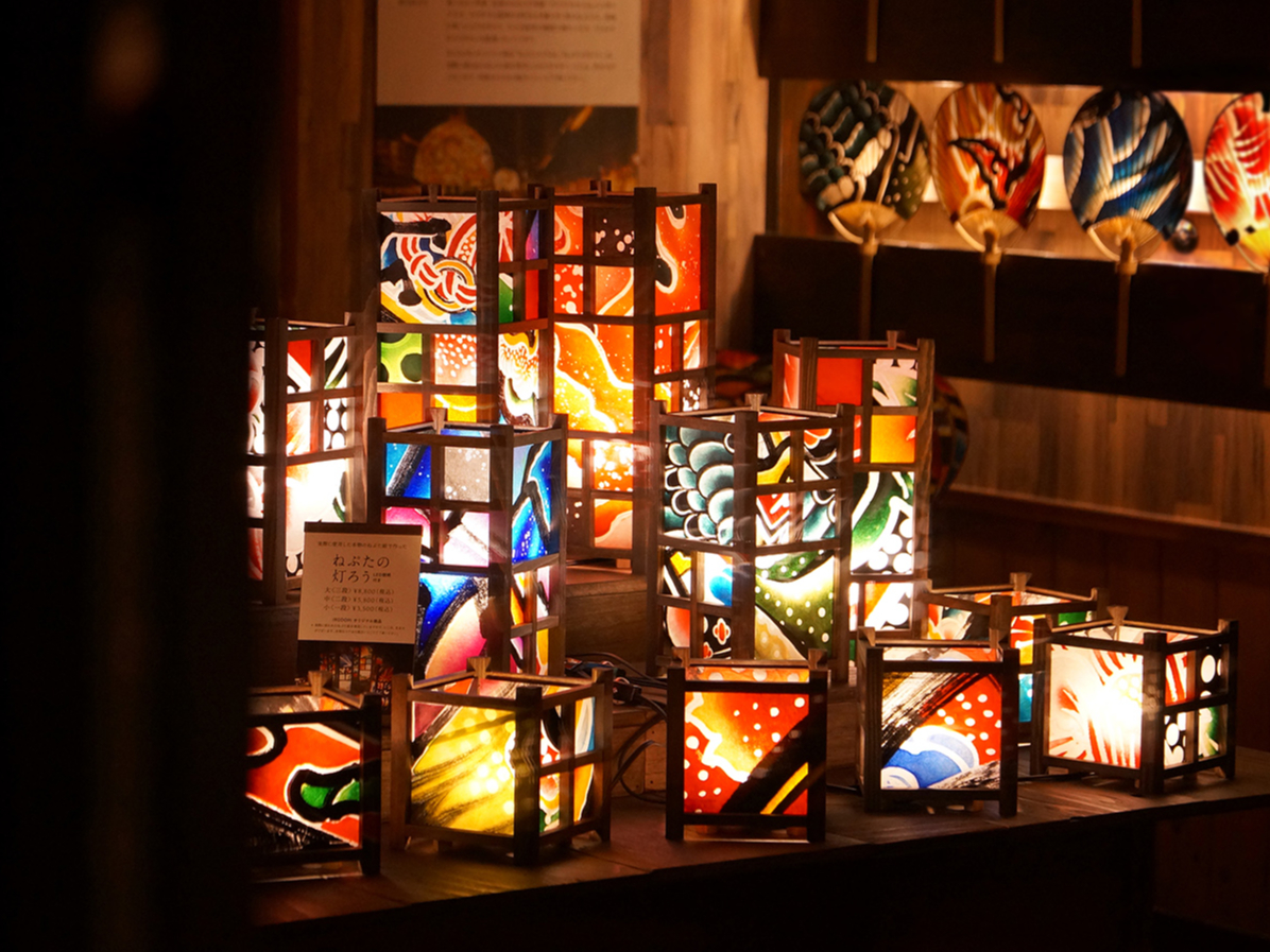 実際に黒石ねぷたまつりで使用した「ねぷた絵」を再利用し、うちわや灯ろうの制作体験や販売を行う工房です。