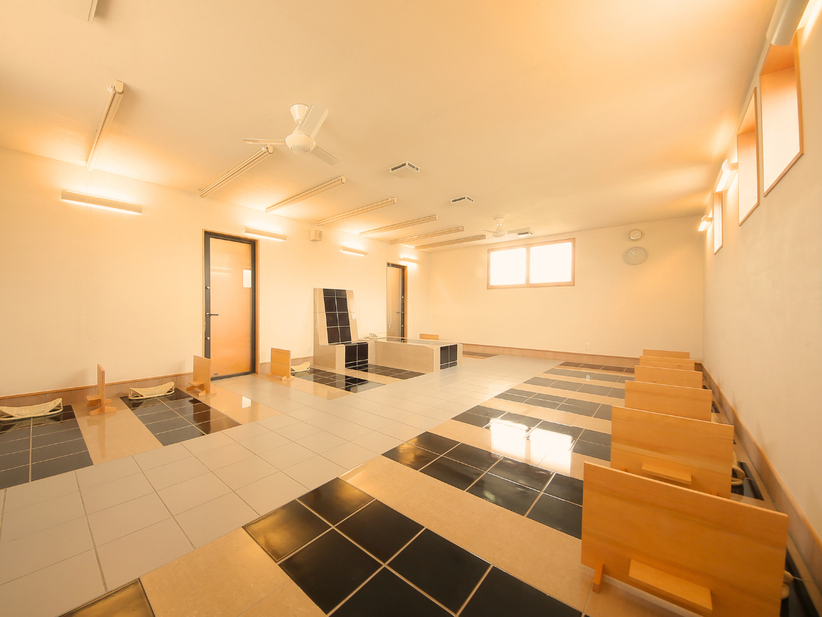 陶板浴は、特殊な陶器のタイルで体を温める低温サウナ。
