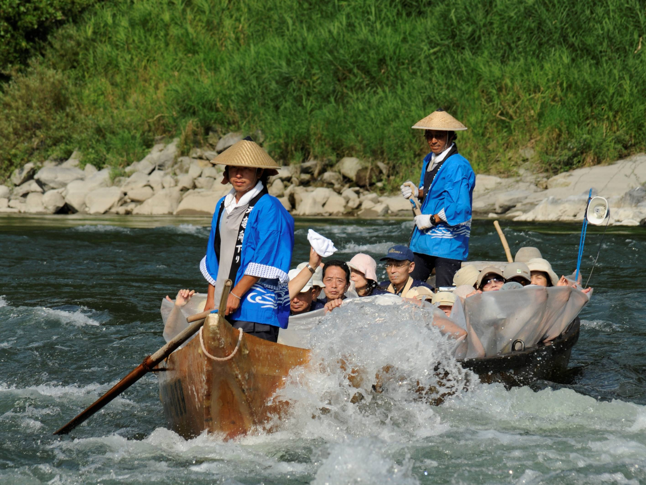 水不足で水位がギリギリだったようですが、初体験の川下りは、とても気持ちよかったです。船頭さんの声かけや、ずぶ濡れになるタイミングのリアクションが面白かったです。船酔いを心配しましたが全然しませんでした。優雅なひと時を過ごせました。