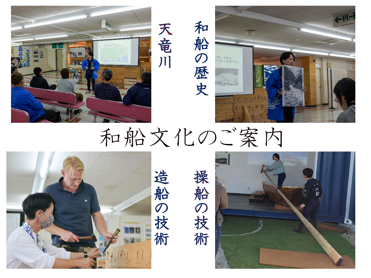 川下りの歴史、造船技術、操船技術のご案内と体験をお楽しみいただきます。