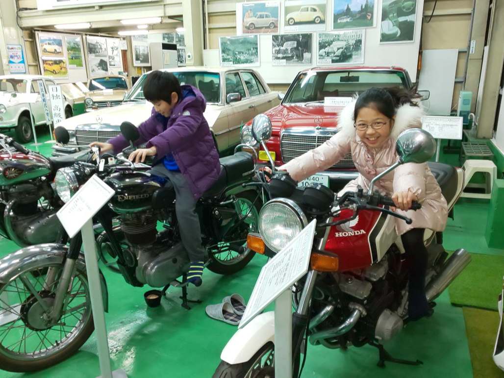 希望者には往年の名車S800(ホンダ)スポーツ800(トヨタ)117クーペ(いすゞ)、現在でも大人気のバイクCBX400(ホンダ)GT380(スズキ)のエンジン起動体験付です。実際に車のシートに座ってハンドルを握り、写真を撮ることも出来ます。