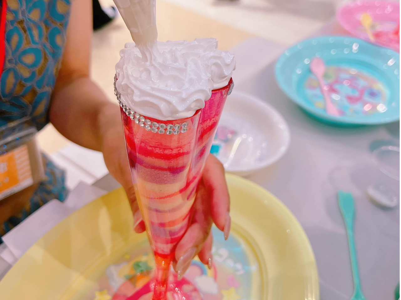 サンドアートとホイップでデコの両方体験できます。パーツもたくさんの中から選べます
