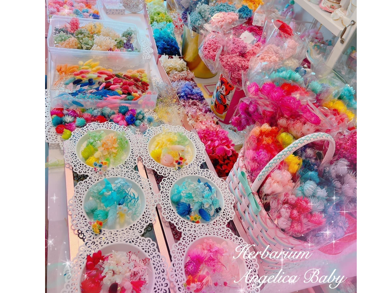 お花に囲まれながらのハーバリウム体験。OnlyOneが作れる!たくさんの本物お花のプリザーブドフラワーを使用します。