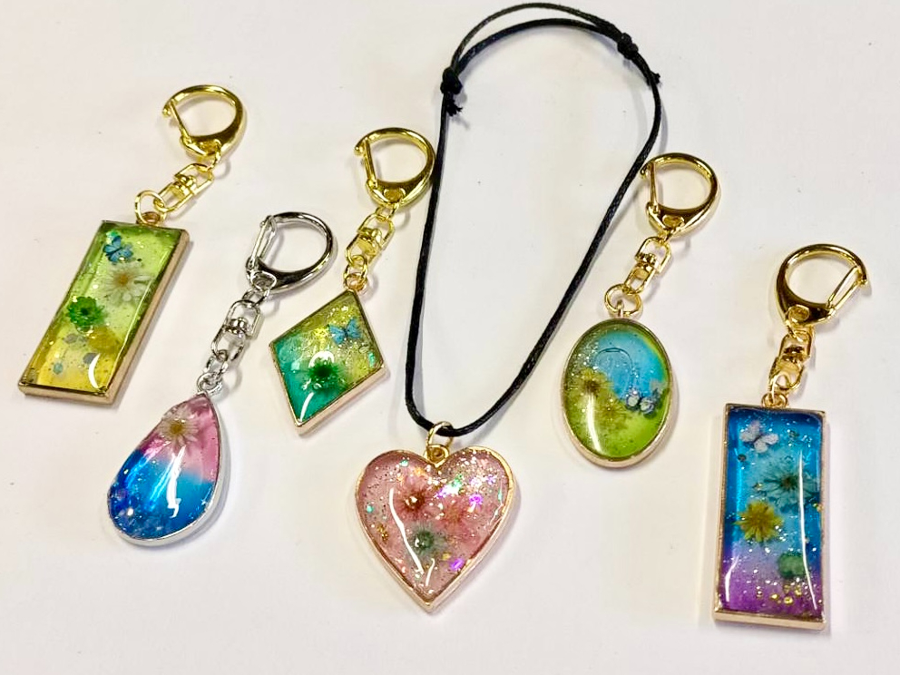 ●レジンでキーホルダーやネックレス、ヘアゴムなどが作れます!(材料費込み・当日お持ち帰りOK!)