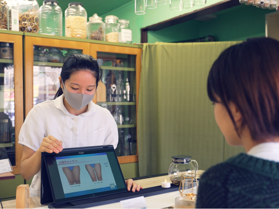 体験前&体験中&体験後、水素水かハーブティーのサービスがございます。