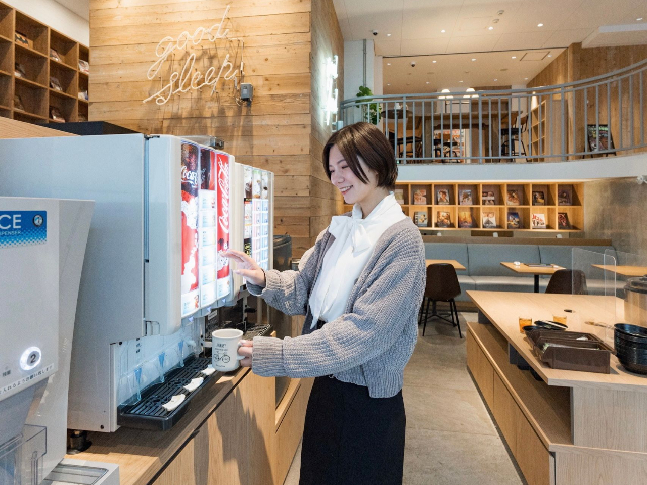 ドリンクバーはもちろん、うどんやカレー・パンなど軽食が24時間食べ放題!!