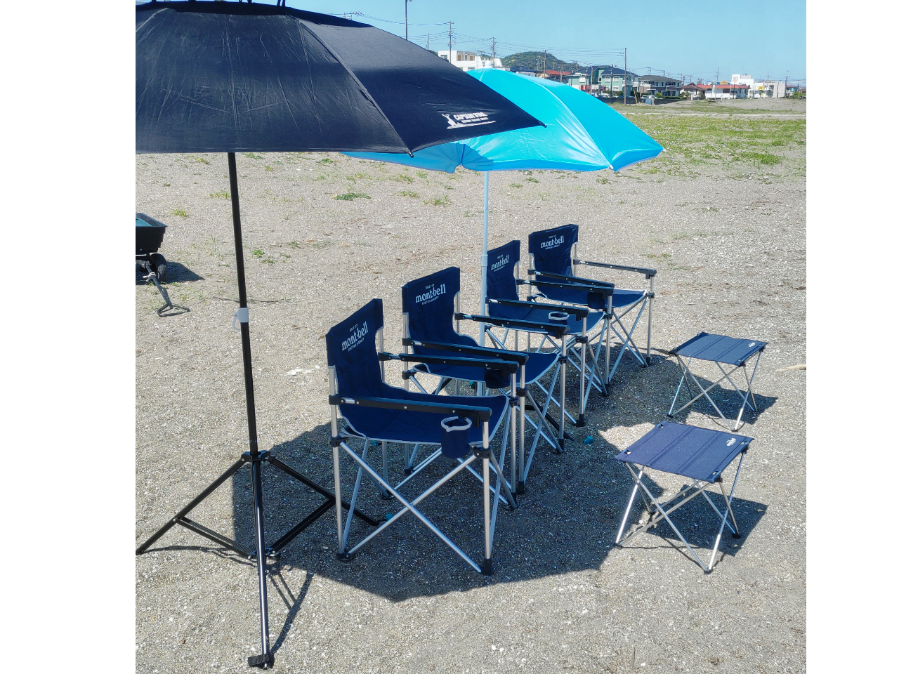 広ーくて人の少ない三浦海岸で、ペグでしっかり固定できるポール立てにパラソルを立てれば、トンビや紫外線対策はばっちり。ご自身で設置、火おこしができる必要があります。